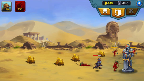 2、当玩家积累足够战争矿产后,即可开始训练作战士兵,士兵培育需要消耗特定金币才能完成,训练完毕后,点击界面中的方位标识,便可指挥火柴人军团向敌军阵地发起冲锋