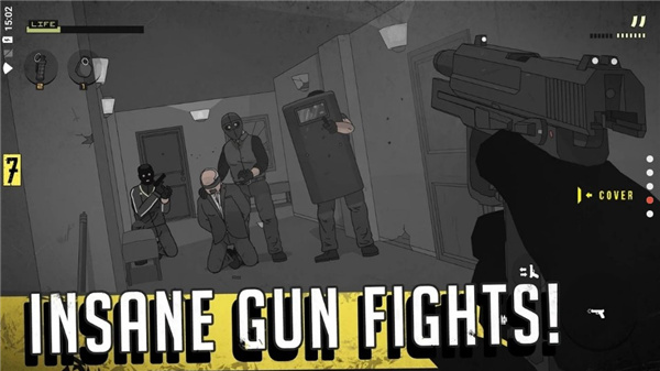 3、卡通风格画面,全新射击闯关冒险,扮演强力枪手,控制火柴人完成射击任务,成为最强神枪手。