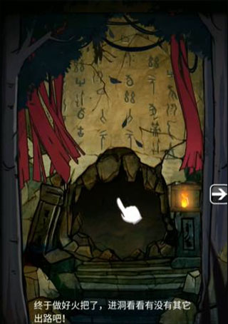 3、返回洞穴入口,用沾树脂的木棍点燃壁灯