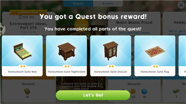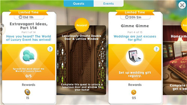 1、首次婚姻需要完成婚礼任务,限时达成可获得整套家具奖励