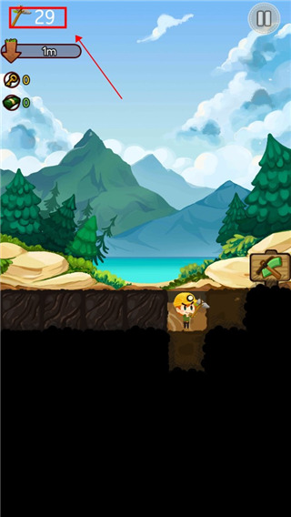 3、随着土层被清除,左上角矿镐数量逐步减少