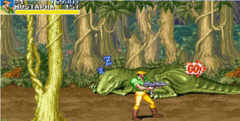 恐龙快打单机版是一款横版动作街机游戏,依靠出众的打击效果与鲜艳的画面表现,让众多年轻玩家沉迷于街机厅内。尽管这款游戏由日本公司开发并采用美式漫画风格,却依然在中国市场大受欢迎,成为80后与90后两代人的集体记忆。游戏将时间设定在26世纪,人类从地下重返地表,发现因全球气候变暖与环境改善而复活的恐龙,由此展开人类与恐龙之间的激烈冲突。恐龙快打手机版延续了卡普空经典街机游戏的按键布局,仅设A、B两个功能键,分别负责攻击与跳跃动作。配合摇杆与按键组合还能施展多样特殊攻击招式,极具趣味性。值得强调的是,在街机盛行的90年代,这款作品的打击反馈堪称业界标杆。具体表现为每次命中都充满力量感,既不像名将那样带有粘滞感,也不似快打旋风那般轻盈,为玩家呈现酣畅淋漓的战斗享受。
