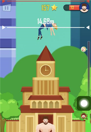 2、游戏开始后,通过点击屏幕抛掷游戏角色,初始阶段抛掷高度有限,后续会逐步提升
