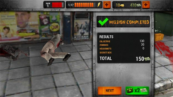 4、关卡结束后进入结算界面,爆头消灭丧尸可获得额外资金;