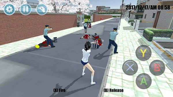 10、绝对避免被教师发现手持武器,否则立即结束,篮球、单车、飞行器都计为武器,校门放置武器的旁边设有熔炉,可投入焚烧你处理过的角色。