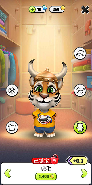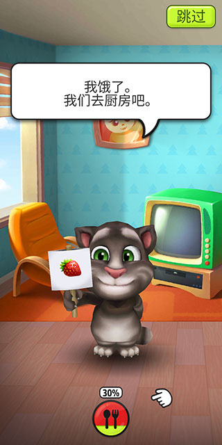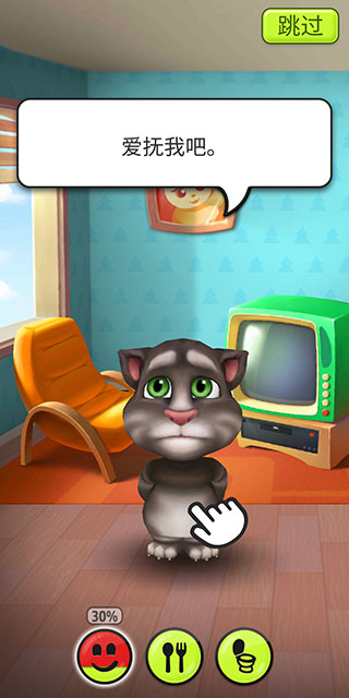 对汤姆讲话,它会模仿您的声音。点击、轻抚或搔痒,观察它产生的有趣反应。