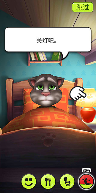 6、玩耍结束后,汤姆猫需要休憩,点击月亮图案进入卧室。